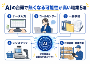 データ入力やコールセンター業務、一般事務などの職種は、今後さらにAIへの置き換えが加速していく可能性が高いです。