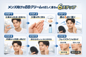 メンズ向けのBBクリームは、次に紹介する6ステップを守りながら塗っていきましょう。