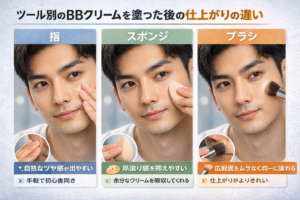 ツール別のBBクリームを塗った後の仕上がりの違い